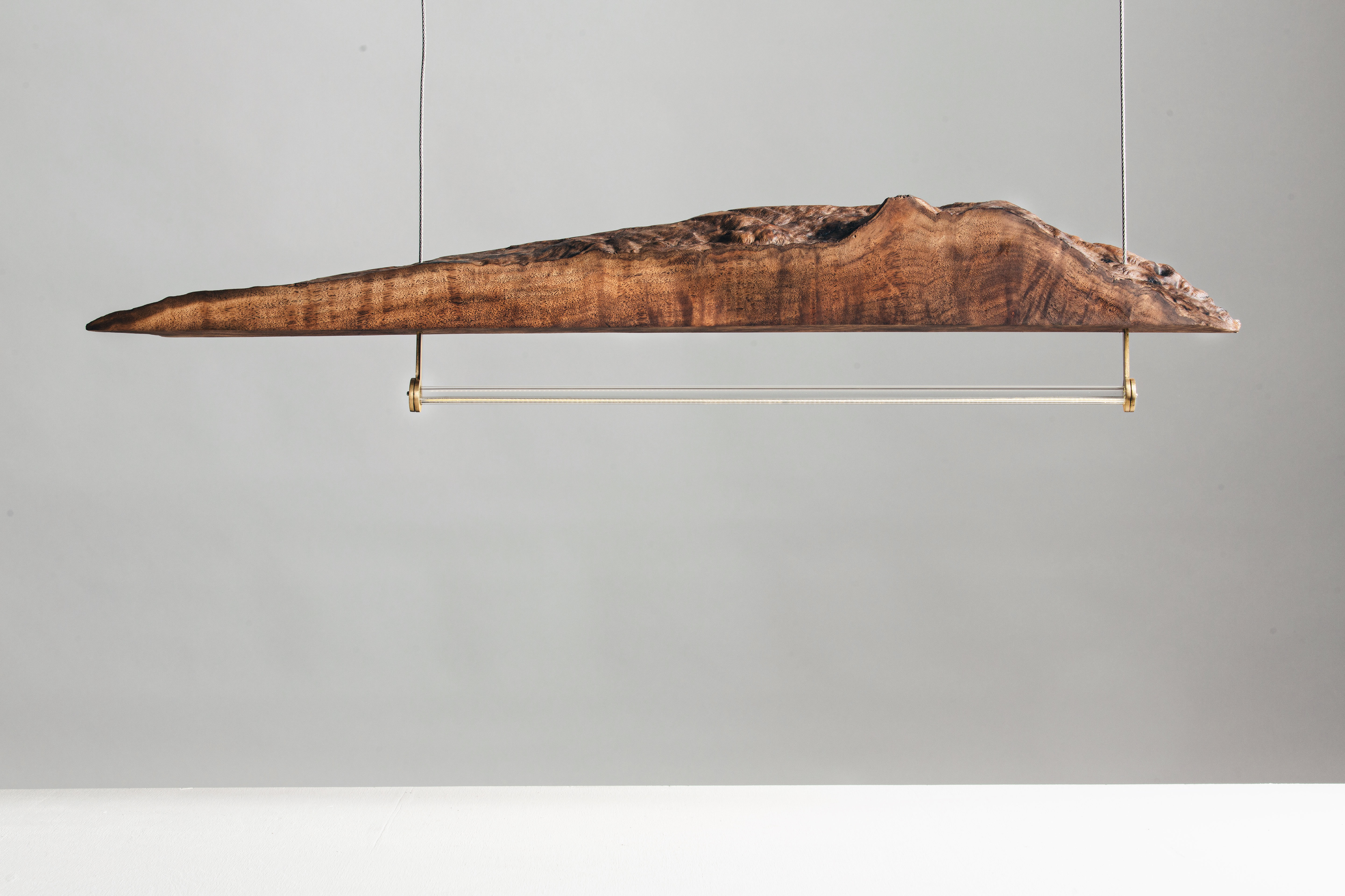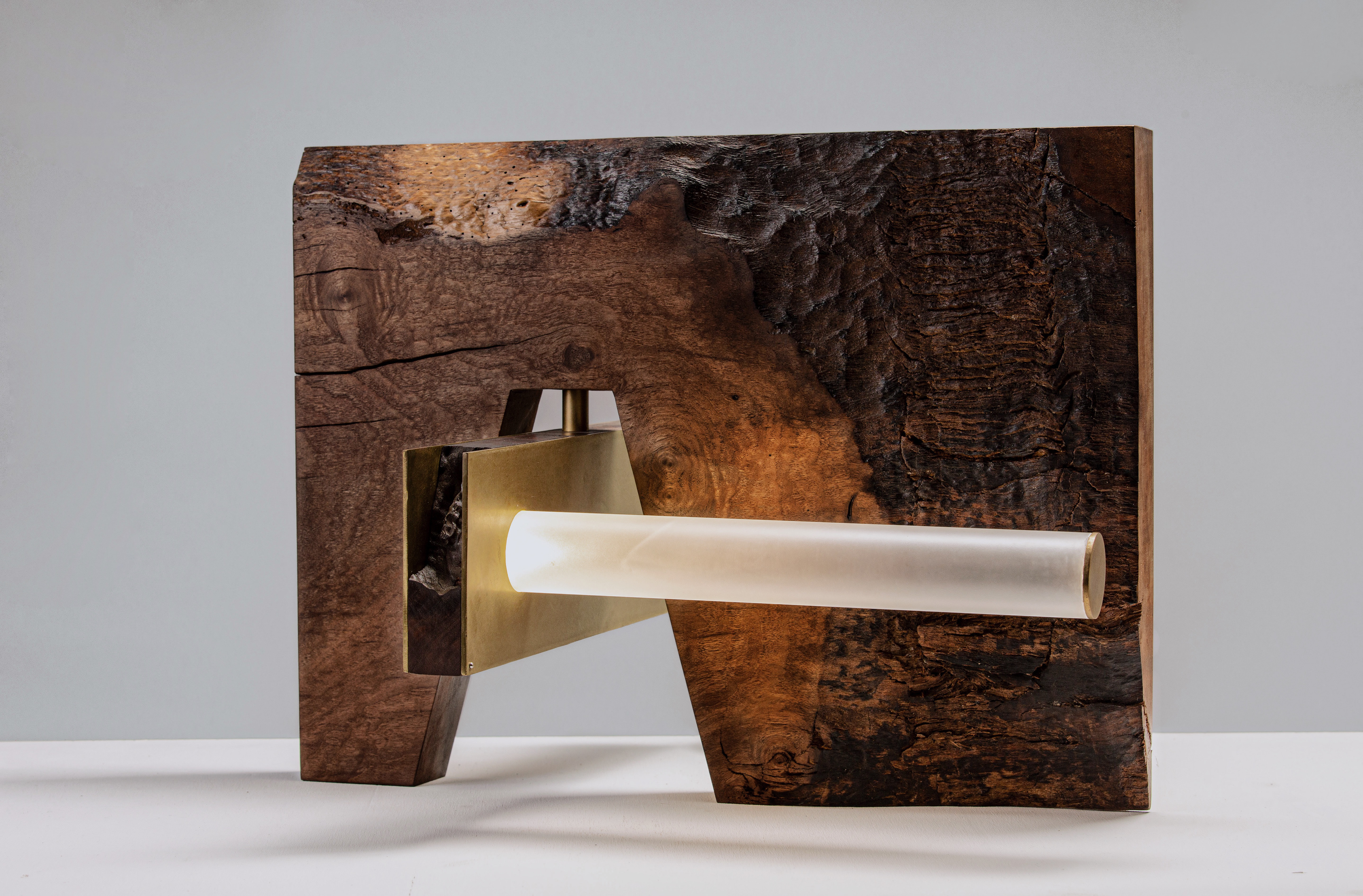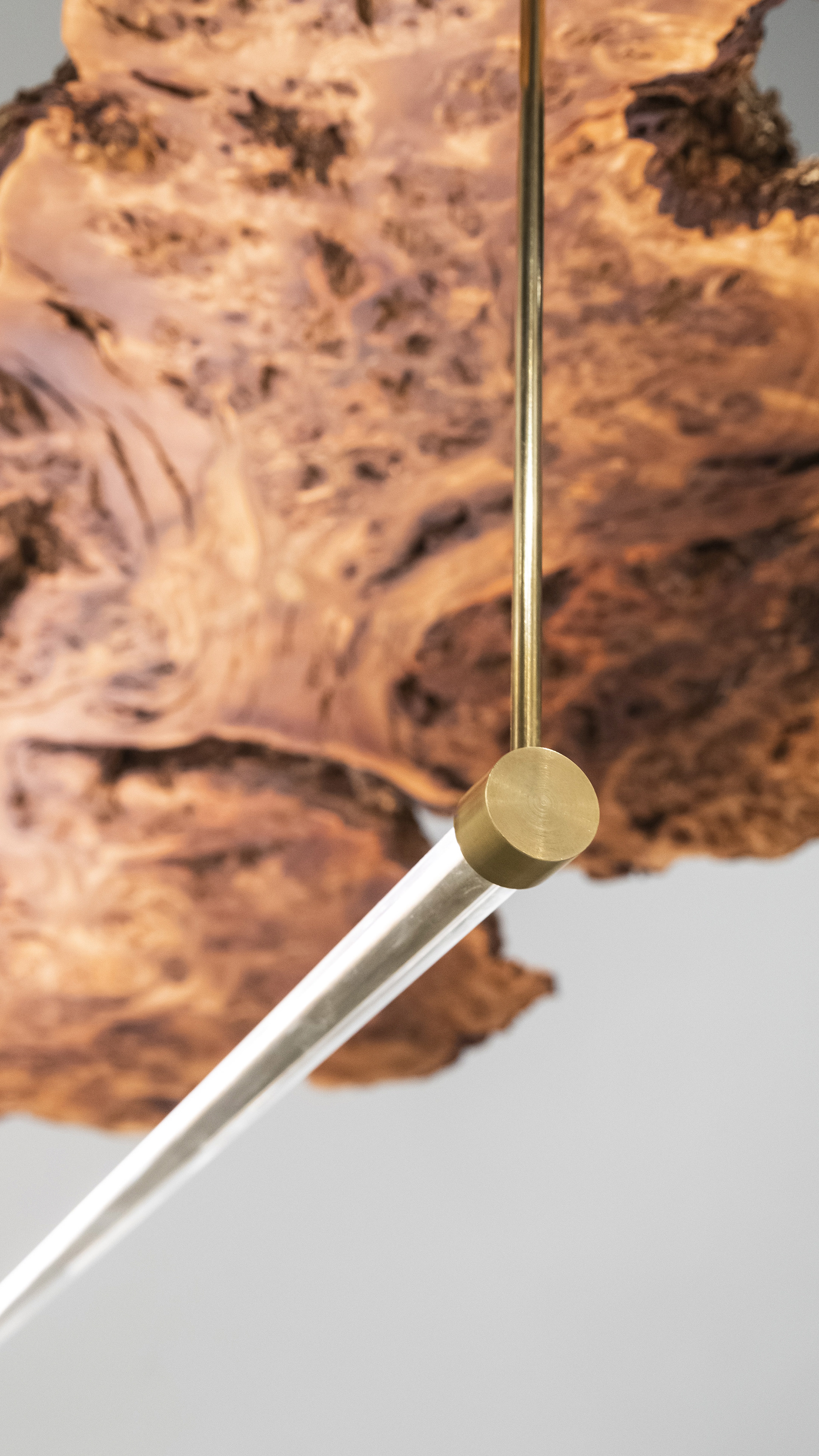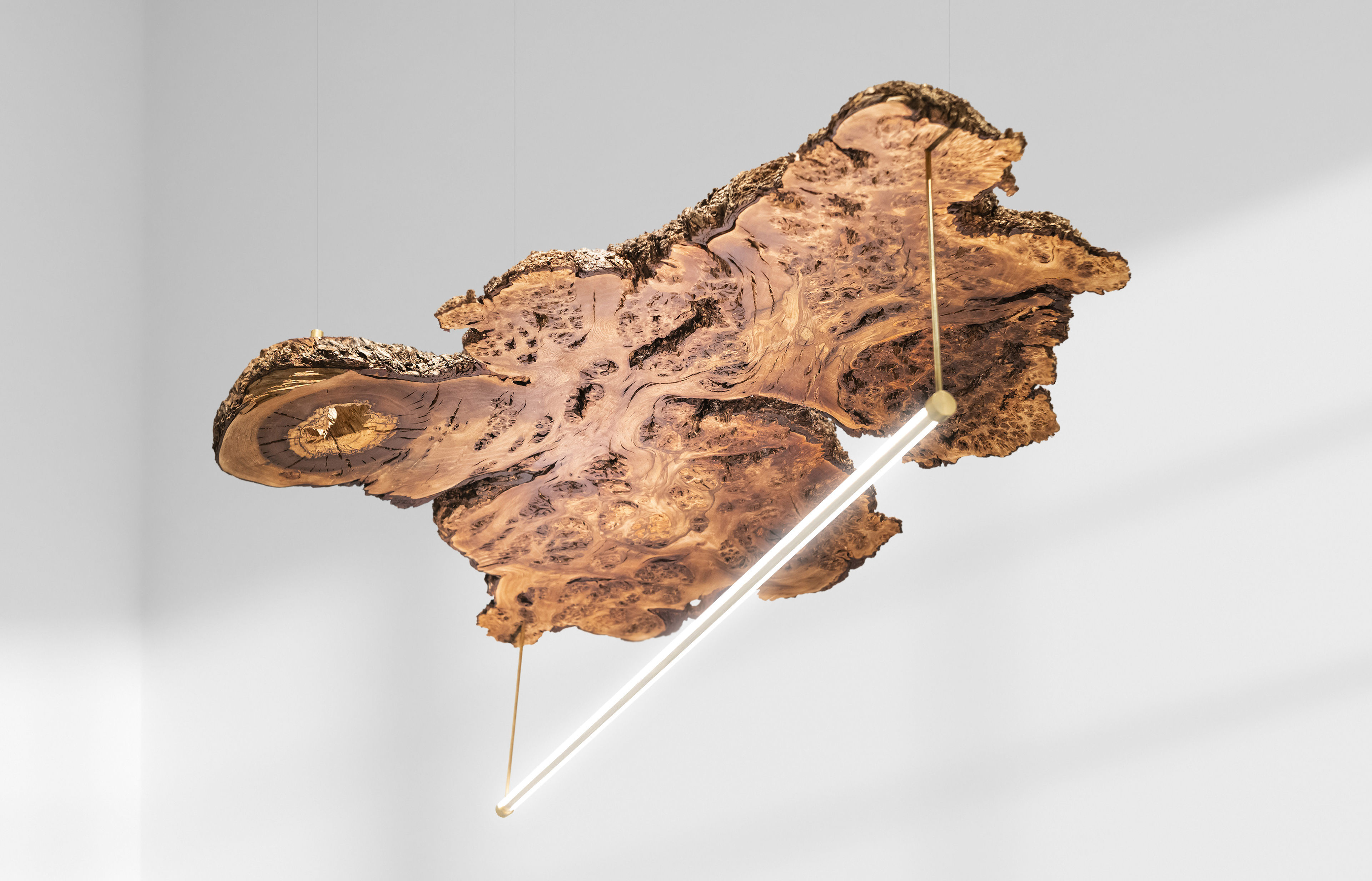 As a furniture designer, my process involves finding and re-creating artistic value in natural and historical detritus. I aim to question what we are capable of re-building with the neglected material, traditional, and natural resources and consider our connection to the past. My designs often emerge from materials that are emblematic of a unique resilience to disappearance because of their emotional or historical charge, such as my neighbor’s 100-year-old olive tree, interior objects from used aircrafts from the 60s, and mid-century aerospace pieces collected from surplus places around Burbank in California. In most of my works, which take the final form of lighting units, my goal is to practice a particular type of postmodern montage that would be sharply evocative of the reciprocal relationship between nature and history to illuminate the present.